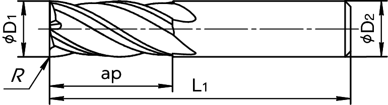 Цельная твердосплавная концевая фреза, 4 зуба, с длинной режущей частью.