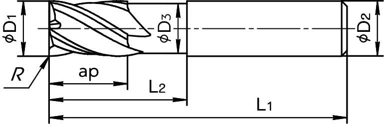 Цельная твердосплавная концевая фреза, 2—4 зуба, с короткой режущей частью, с заниженной шейкой.