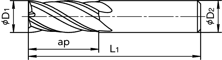 Цельная твердосплавная концевая фреза, 6—16 зубьев, со средней режущей частью.