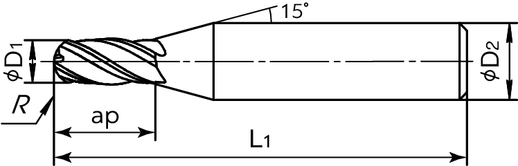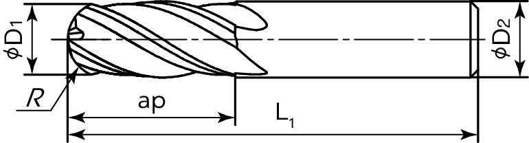 Цельная твердосплавная концевая фреза, 2 зуба, со средней режущей частью.