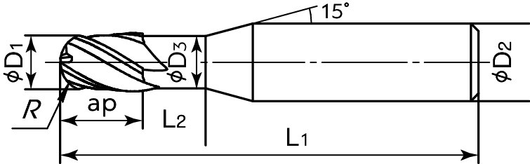 Цельная твердосплавная концевая фреза, 4 зуба, с короткой режущей частью.