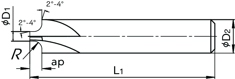 Цельная твердосплавная фасочная фреза со внутренним радиусом, для обработки галтелей, 4—8 зубьев.
